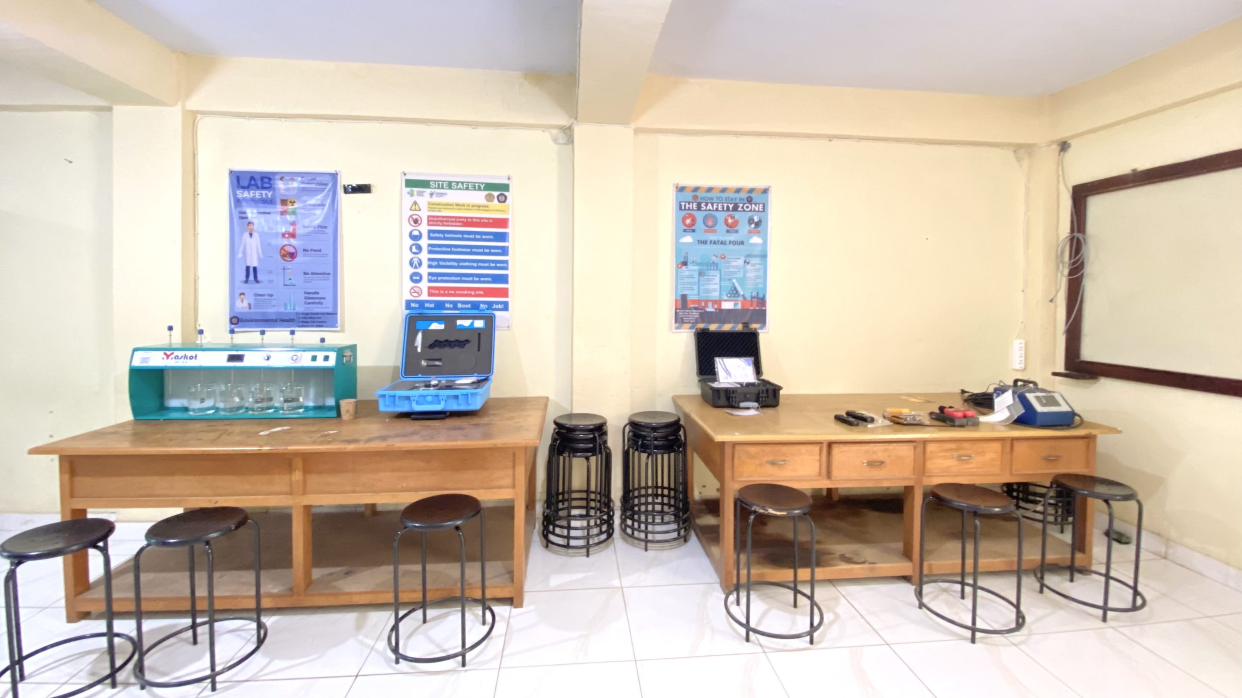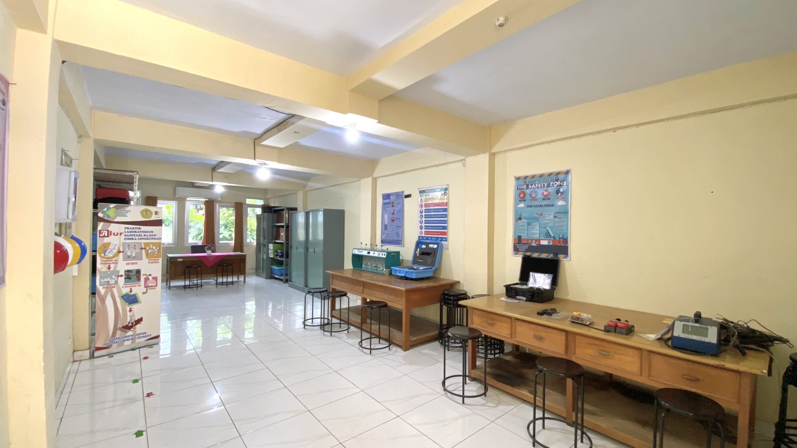 Untuk mendukung proses belajar, kami menyediakan fasilitas laboratorium yang canggih dan lengkap. Di sini, kamu bisa melakukan berbagai eksperimen dan penelitian, mulai dari uji laboratorium air, limbah, hingga mikrobiologi. Kamu bisa mempraktikkan langsung apa yang kamu pelajari di kelas.